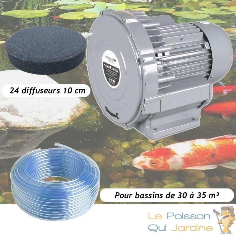 Aérateur turbine aérateur pour bassins de jardin et étangs extérieurs de 30 à 35 m3. Ce surpresseur a un débit d'air de 30000 l/h soit 500 litres par minute.
