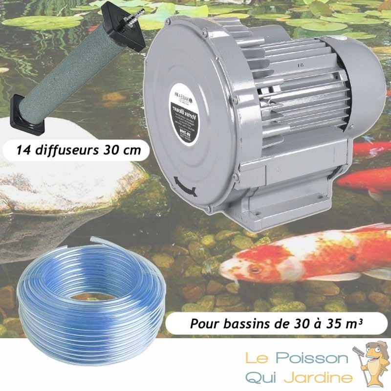 Les aérateurs de bassins ou compresseurs de bassin de jardin sont des appareils qui doivent absorber de l'air, le comprimer et le rejeter dans l'étang ou dans le bassin de jardin via de la tuyauterie et des diffuseurs d'air. L'aérateur doit donc " respirer ".