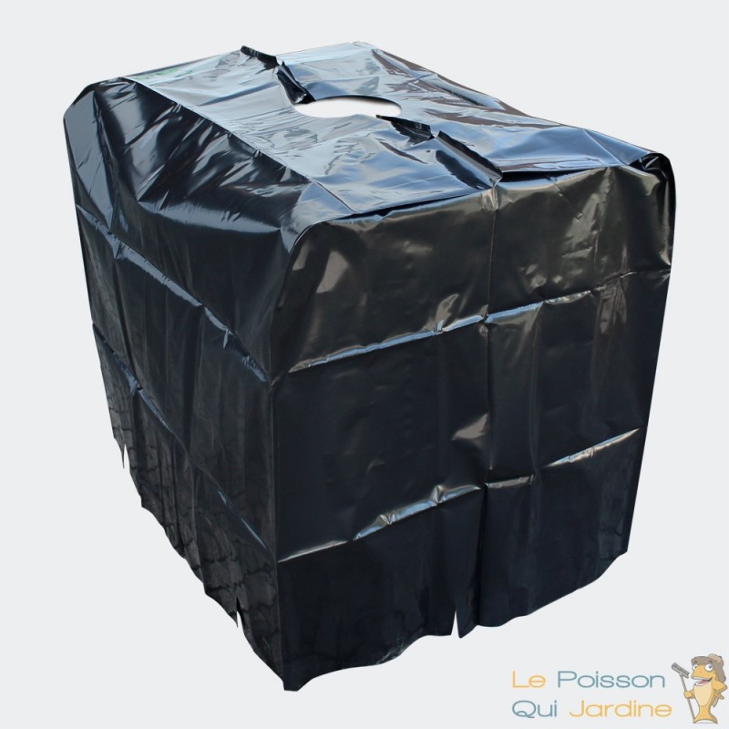 1 bâche pour citernes ou cuves IBC de 1000 litres. Ce sont les citernes d'eau, généralement utilisées pour la récolte d'eau de pluie classiques de 1000 litres. Elles sont de forme cubique et sont souvent quadrillées avec des tubulure en métal qui empêche la déformation de cette dernière lorsqu'elles sont remplies d'eau.