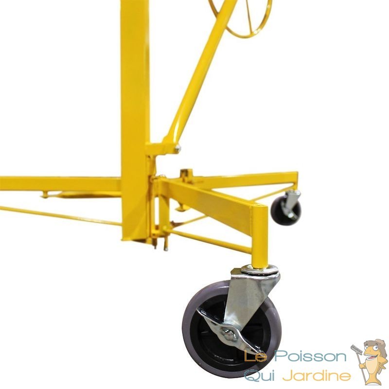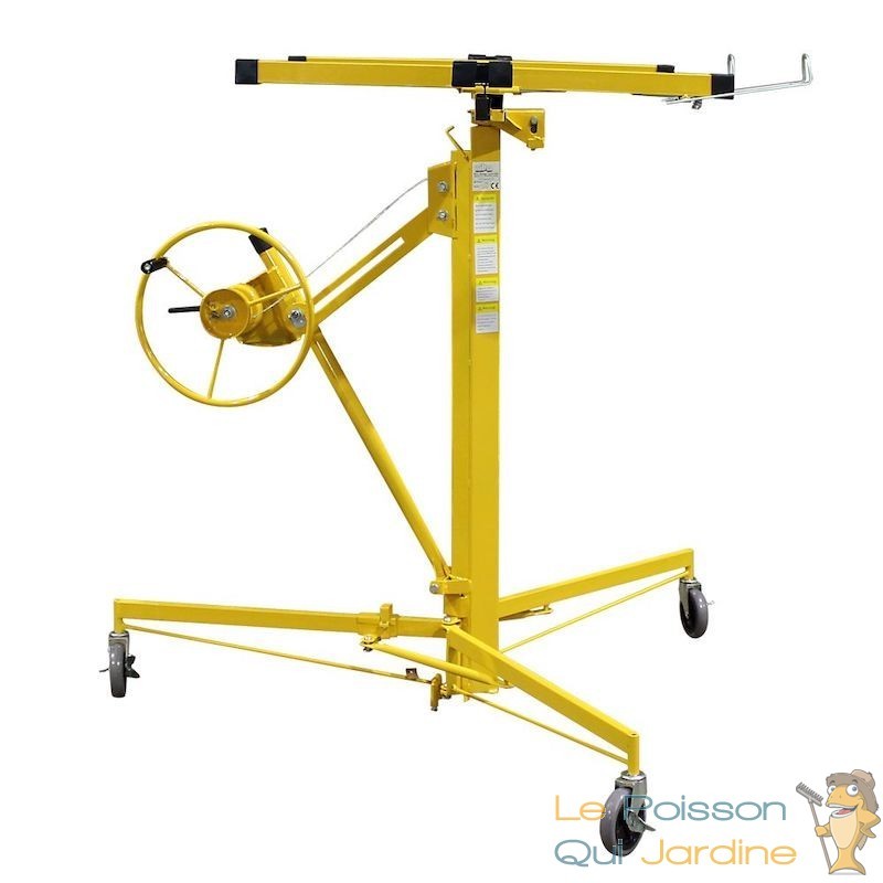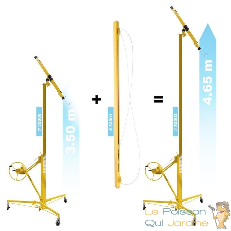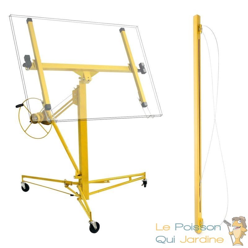 Ce kit de levage est spécialement conçu pour faciliter le montage de cloisons intérieures et de cloisons sèches. Il permet de soulever des charges telles que les plaques de plâtre, les plaques de contreplaqué, les panneaux en bois ou en métal, ainsi que les plaques de protection pesant jusqu'à 68 kg. Il est parfaitement adapté pour le montage incliné au plafond ou au mur, ainsi que pour le montage au-dessus de la tête.