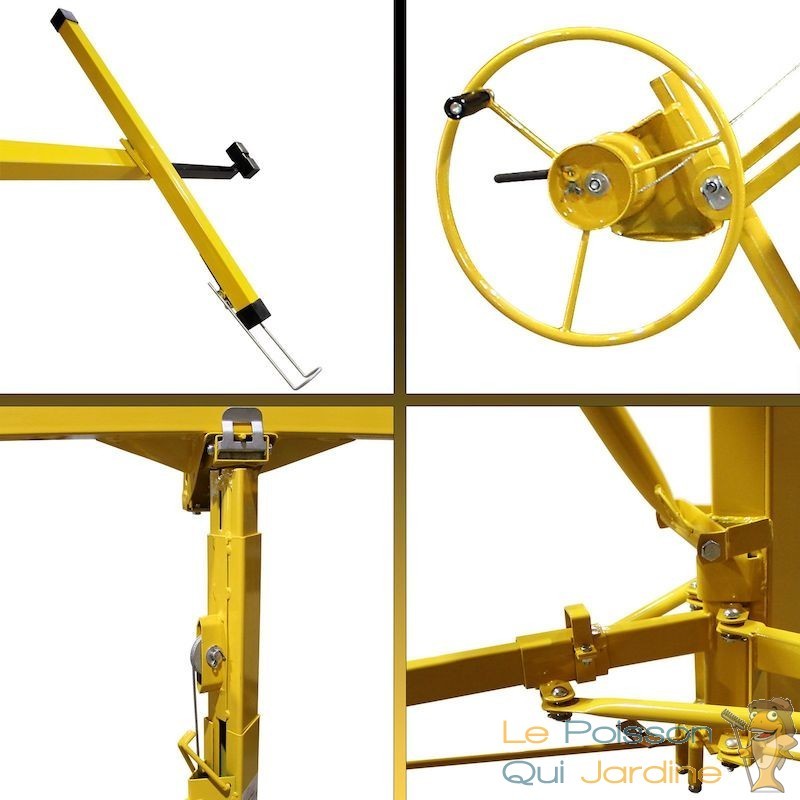La grande portée des bras extensibles permet de couvrir une vaste zone, offrant ainsi une flexibilité maximale pour une variété de projets. Que vous ayez besoin de monter des plaques de plâtre, des étagères ou d'autres éléments, ces bras ajustables peuvent être adaptés à différentes dimensions pour répondre à vos besoins spécifiques. De plus, les équerres de retenue assurent une prise ferme sur les matériaux, minimisant ainsi les risques de glissement ou de chute pendant les travaux.