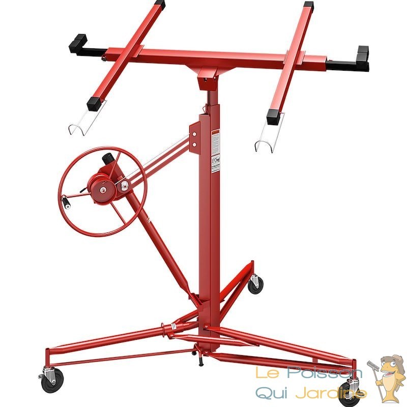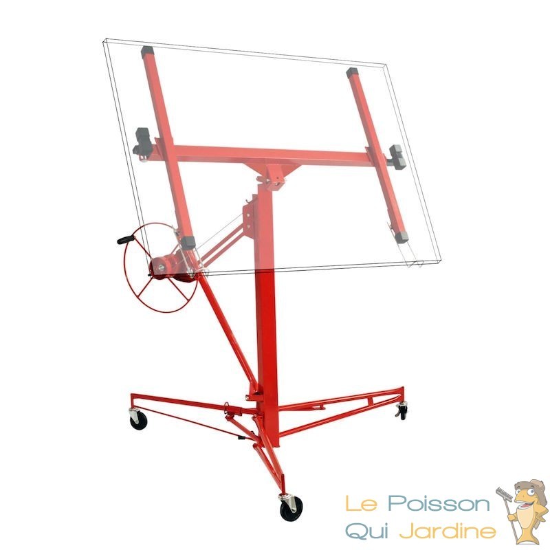 Cet appareil pratique permet de soulever facilement les panneaux ou les plaques de plâtre lors de la construction de cloisons intérieures ou de cloisons sèches. Il peut supporter des charges allant jusqu'à 68 kg, y compris les plaques de placoplâtre, les plaques de contreplaqué, les panneaux en bois ou en métal, ainsi que les plaques de protection. Il est conçu pour être utilisé lors d'un montage incliné au plafond, au mur ou au-dessus de la tête.