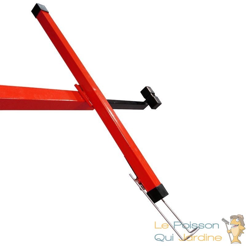L'appareil est équipé de deux bras qui peuvent être étendus jusqu'à une longueur de 290 cm et d'une largeur de 90 cm. Les bras sont équipés de deux équerres de retenue. Cette aide de montage est particulièrement pratique lorsqu'une seule personne doit tenir les plaques pendant le montage au mur ou au plafond. Il peut être entièrement démonté et est livré partiellement assemblé.