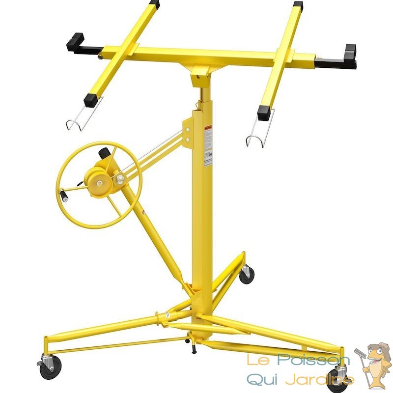 Cet appareil pratique permet de soulever facilement les panneaux ou les plaques de plâtre lors de la construction de cloisons intérieures ou de cloisons sèches. Il peut supporter des charges allant jusqu'à 68 kg, y compris les plaques de placoplâtre, les plaques de contreplaqué, les panneaux en bois ou en métal, ainsi que les plaques de protection. Il est conçu pour être utilisé lors d'un montage incliné au plafond, au mur ou au-dessus de la tête.
