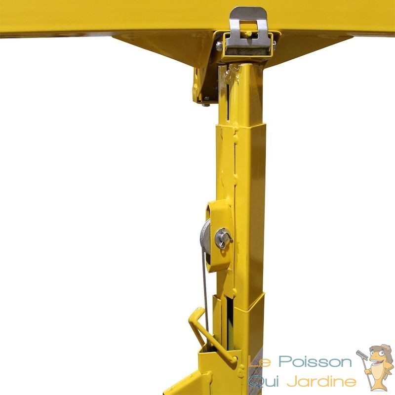 L'appareil est équipé de deux bras qui peuvent être étendus jusqu'à une longueur de 290 cm et d'une largeur de 90 cm. Les bras sont équipés de deux équerres de retenue. Cette aide de montage est particulièrement pratique lorsqu'une seule personne doit tenir les plaques pendant le montage au mur ou au plafond. Il peut être entièrement démonté et est livré partiellement assemblé.