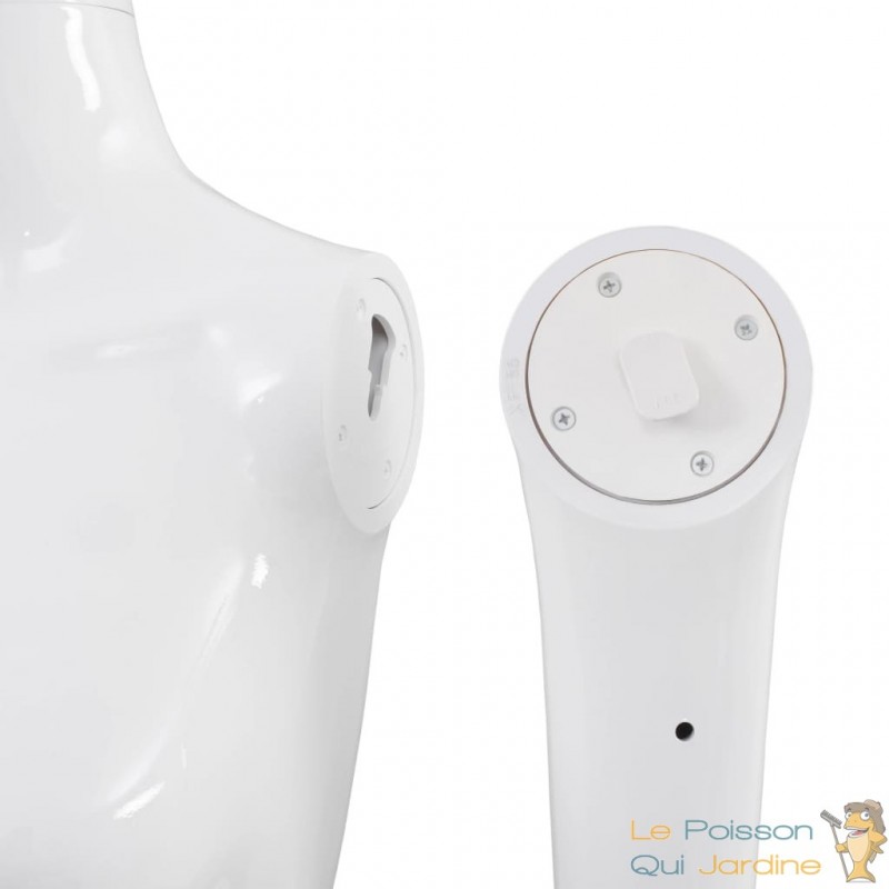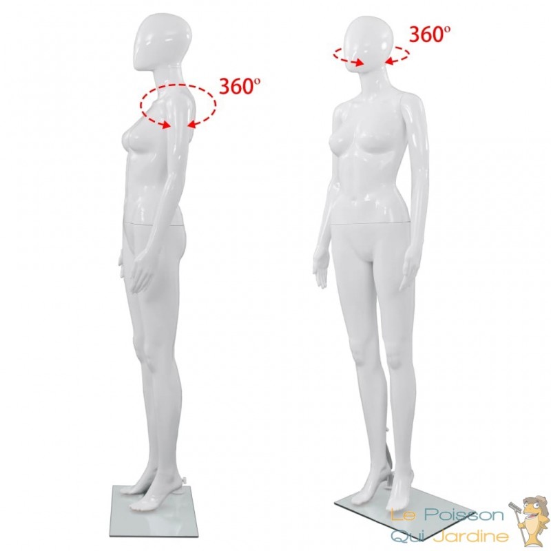 Le mannequin en question se démarque par sa composition ingénieuse en cinq parties distinctes, comprenant la tête, le torse, les jambes, le bras droit et le bras gauche. L'une de ses caractéristiques principales réside dans la capacité de rotation à 360 degrés offerte par la tête et les bras. Cette fonctionnalité vous permet de positionner le mannequin de manière variée, offrant une flexibilité remarquable pour mettre en valeur avec élégance vos produits ou éléments de décoration.