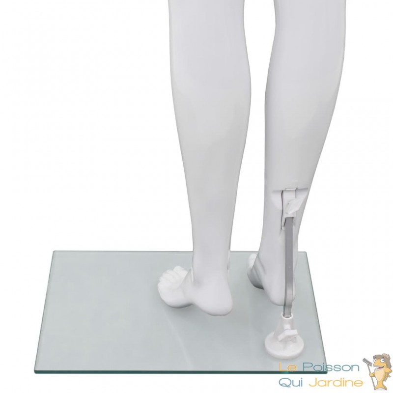Le corps entier du mannequin est fabriqué en polypropylène, un matériau à la fois léger et durable, garantissant sa longévité. Sa base en verre, renforcée par un support en aluminium, assure une stabilité optimale. Cela permet au mannequin d'exposer élégamment des vêtements, des perruques, des chaussures ou d'autres articles dans un cadre commercial, qu'il s'agisse de bars, de restaurants, de magasins de décoration ou de chez vous.