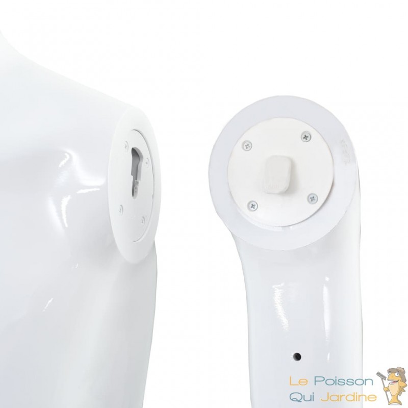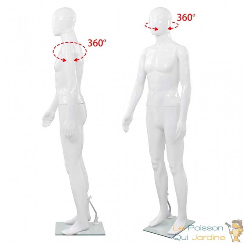 Ce mannequin se distingue par sa composition en cinq parties, incluant la tête, le torse, les jambes, le bras droit et le bras gauche. La tête et les bras offrent une rotation à 360 degrés, vous permettant de positionner le mannequin de différentes manières pour mettre en valeur vos produits ou votre décoration.