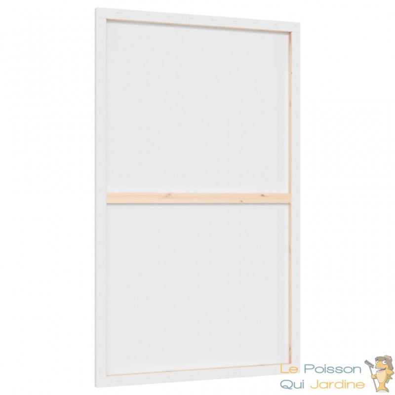 La toile est tendue avec soin et fixée solidement sur ce cadre en pin massif, garantissant ainsi sa robustesse et sa résistance à la déformation, même sous des conditions exigeantes.