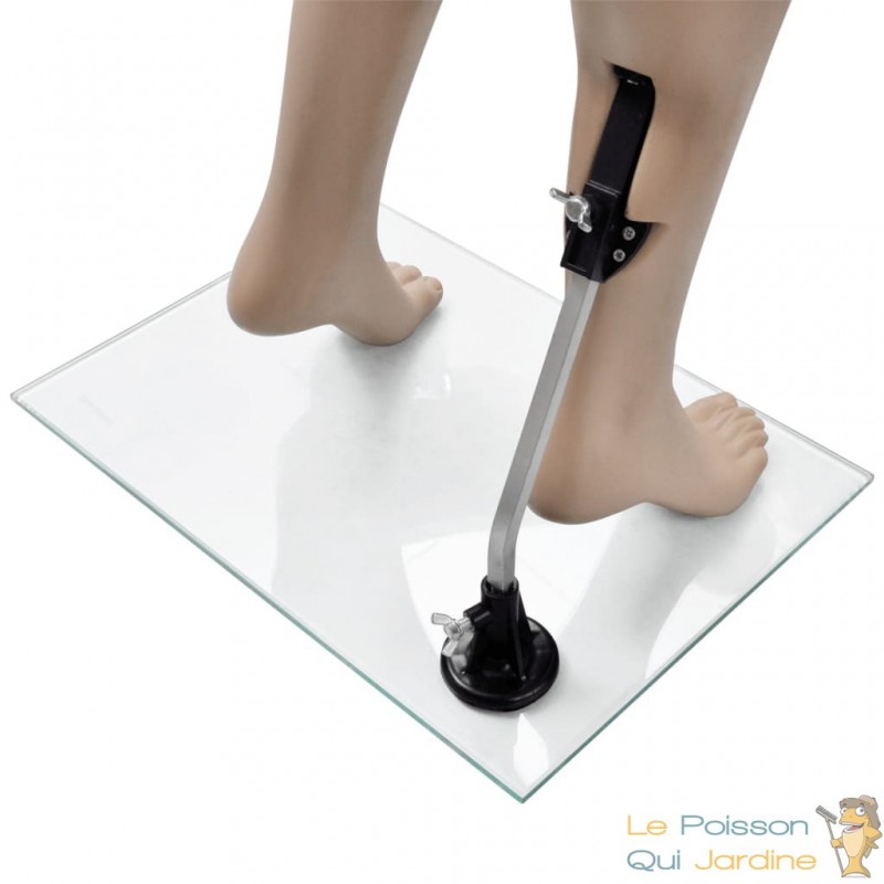 Pour assurer sa stabilité, le mannequin est livré avec une base en verre et est soutenu par un support en aluminium à l'arrière, garantissant une présentation sécurisée et professionnelle des produits.
