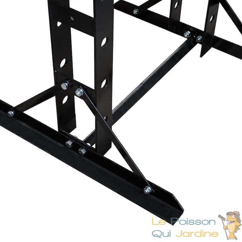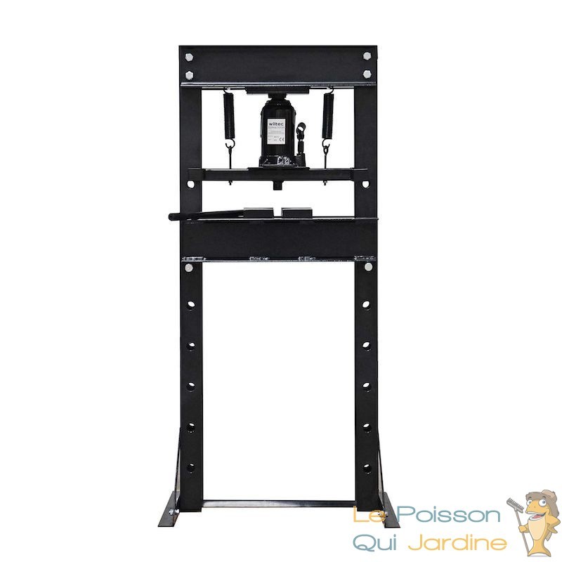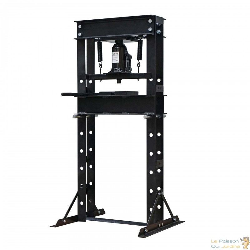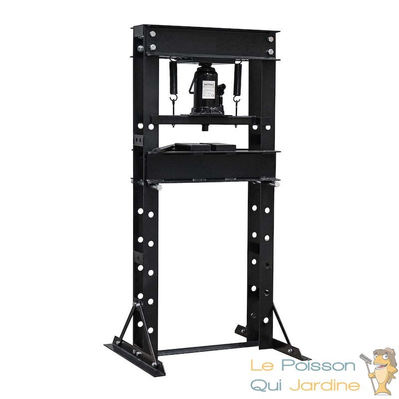 Une presse d'atelier hydraulique est un équipement mécanique conçu pour appliquer une force considérable sur un objet, généralement dans le but de le plier, le presser, le poinçonner, ou l'écraser. Elle se compose généralement des éléments suivants :