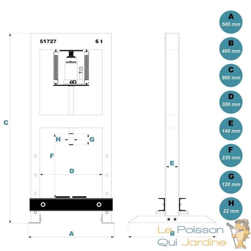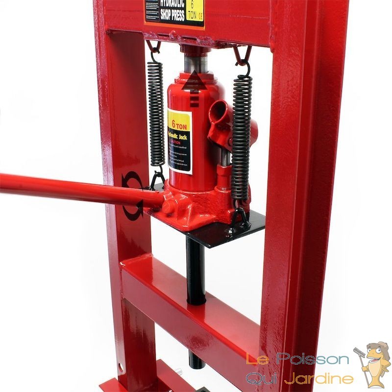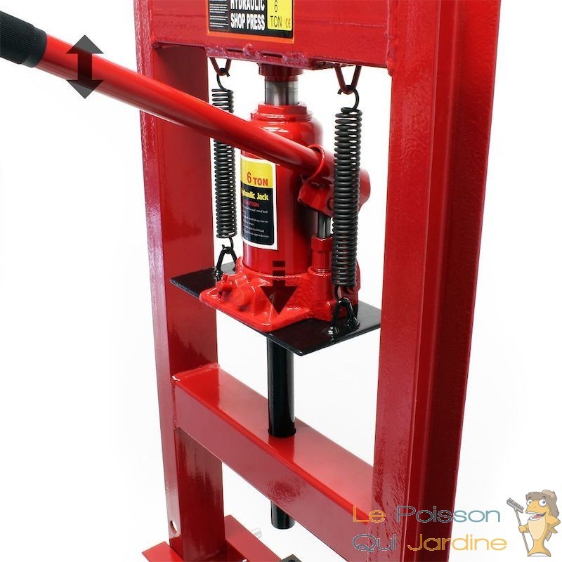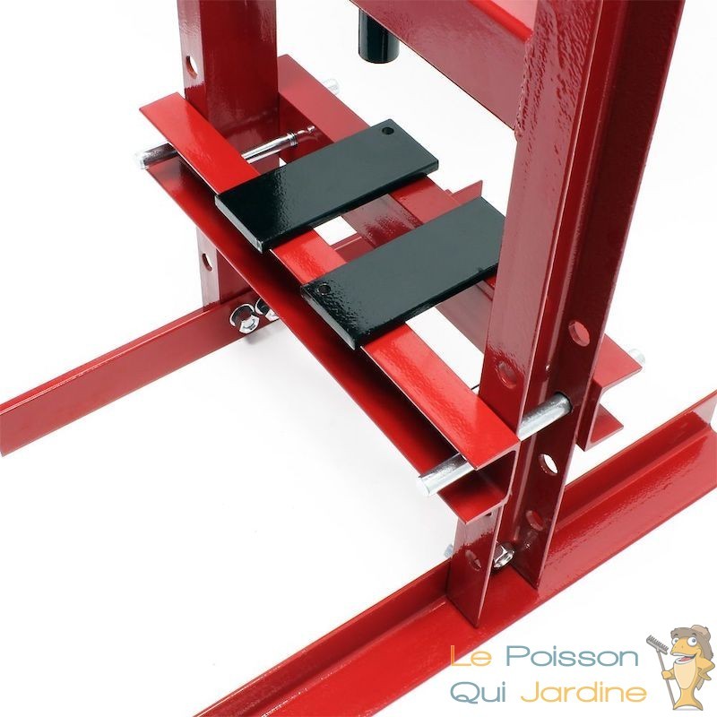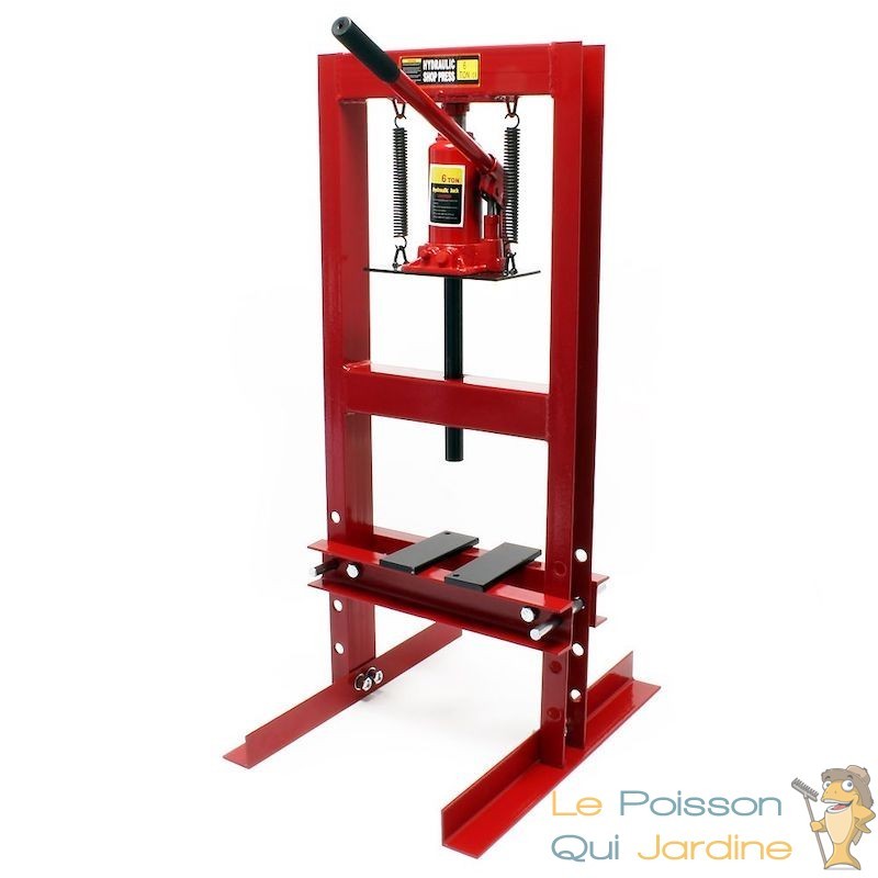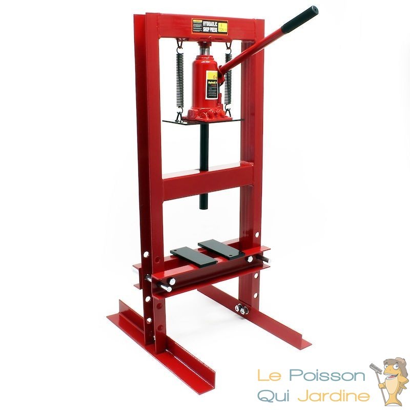 Une presse d'atelier hydraulique est un équipement mécanique conçu pour appliquer une force considérable sur un objet, généralement dans le but de le plier, le presser, le poinçonner, ou l'écraser. Elle se compose généralement des éléments suivants :