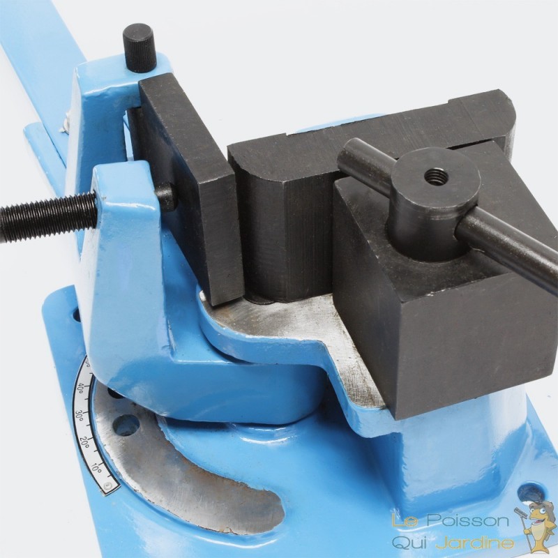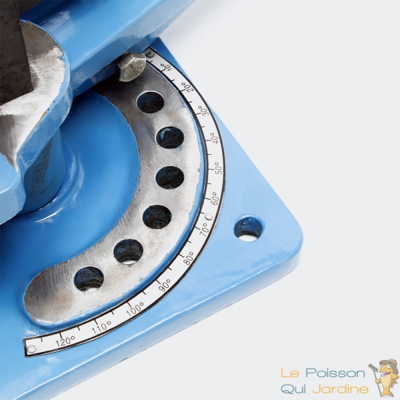 Afin de pouvoir cintrer précisément vos tubes d'acier, fer plat ou barres métalliques, la cintreuse est munie d'un tableau de graduation de 0 à 125°. Vous choisirez alors l'angle précis ( au degré près ) pour plier votre tube d'acier.