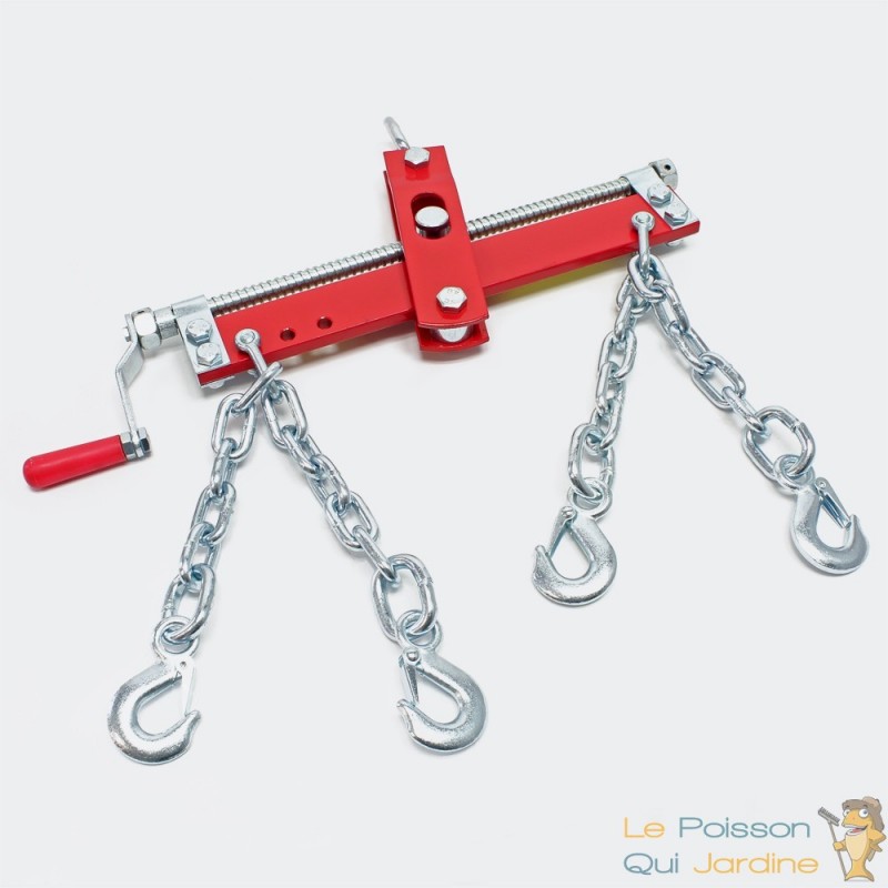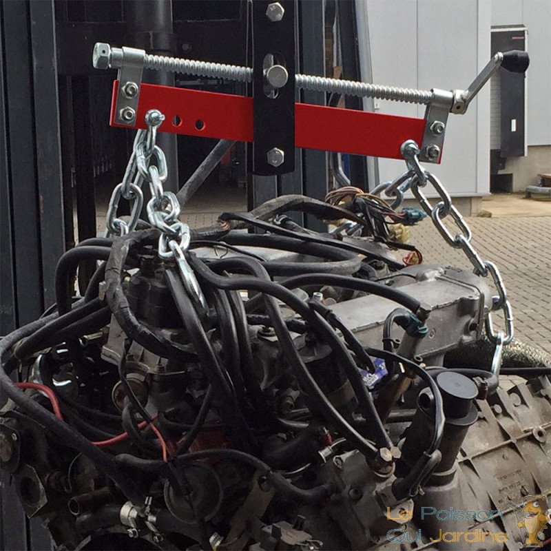 Il suffit d'attacher ce balancier à une grue d'atelier et de régler la position pour pouvoir déposer un moteur ou le replacer.