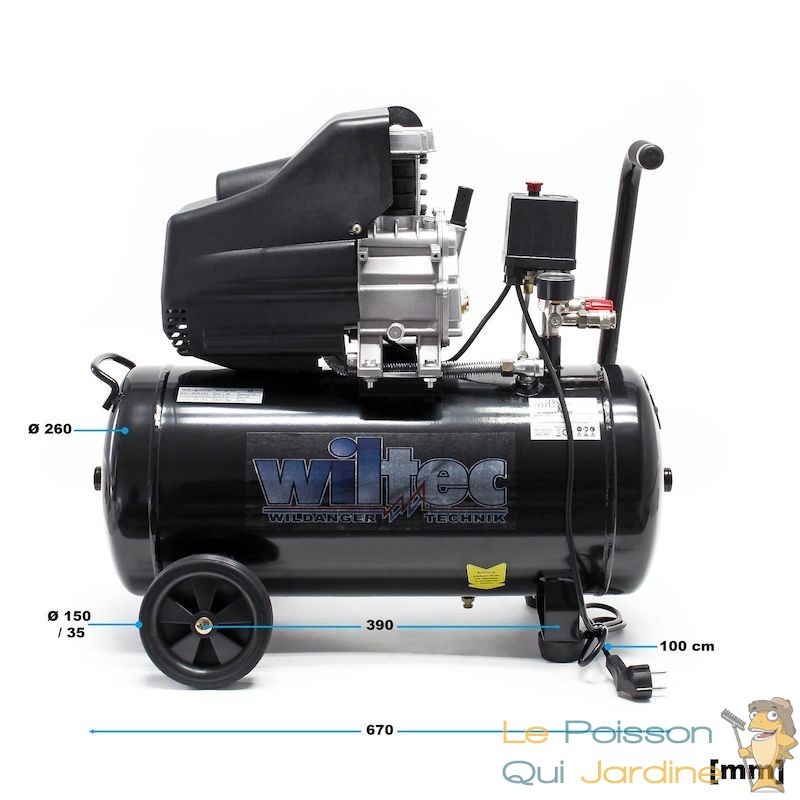 Grâce à sa poignée pratique et aux roues fixées sous le compresseur, il offre une grande flexibilité et peut être déplacé rapidement et facilement vers le lieu d'utilisation.