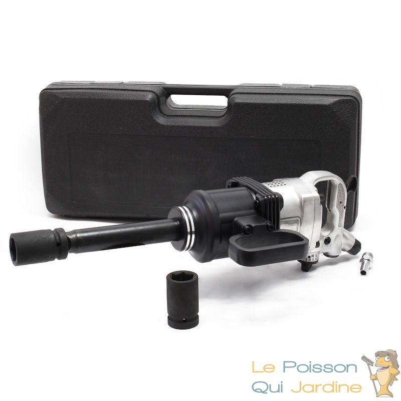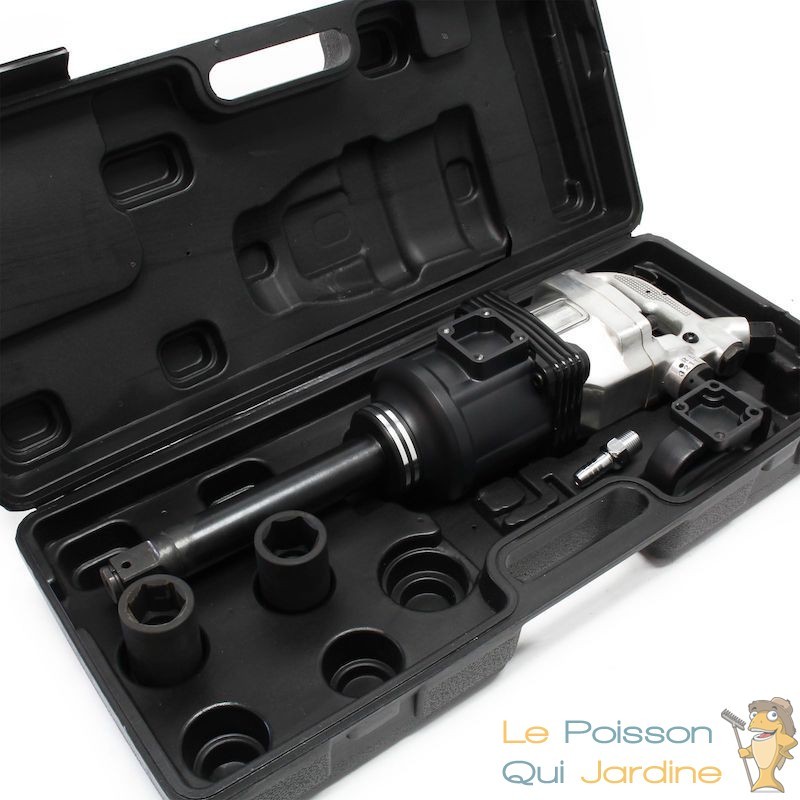 En résumé, la clé à chocs pneumatique est un outil puissant et polyvalent qui facilite les travaux de montage et de démontage. Son couple maximal élevé, sa poignée montable et ses accessoires inclus en font un choix pratique et complet pour de nombreuses applications.