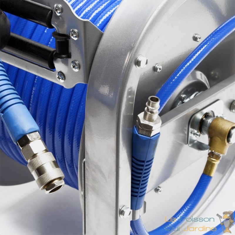 et avoir à l’entrée de l’enrouleur un raccord standard mâle ou femelle.
