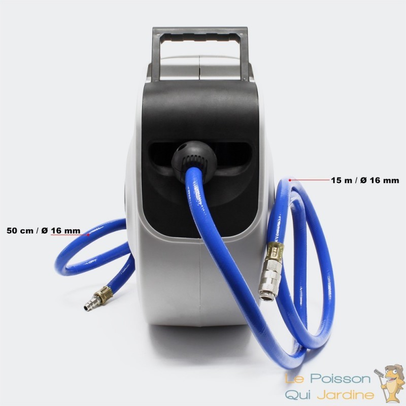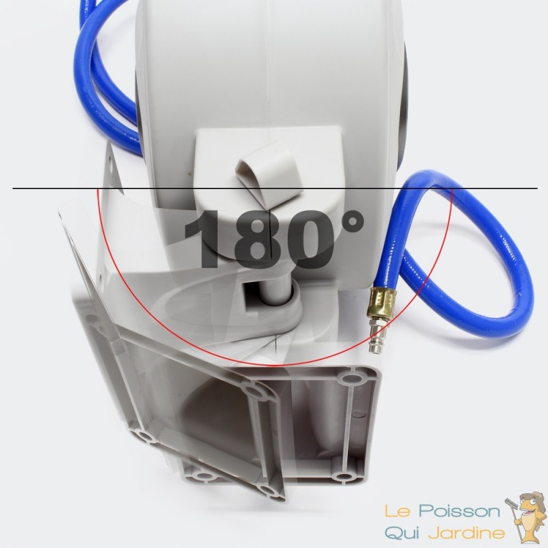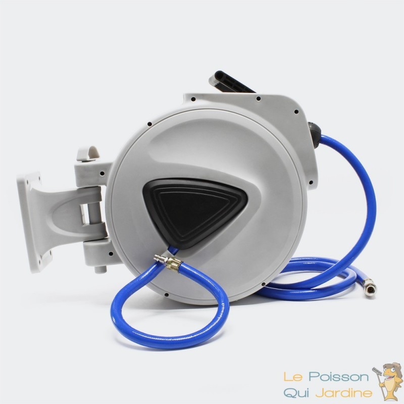 Cet enrouleur possède un arrêt automatique. C'est-à-dire que vous tirer la longueur du tuyau nécessaire, et il s'arrête automatiquement. Il y a aussi la fonction de rappel qui permet d'enrouler automatiquement le tuyau à la fin du travail. Pas besoin de le faire manuellement.