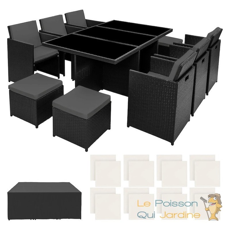 Salon de jardin 10 places avec 2 sets de housses + housse de protection