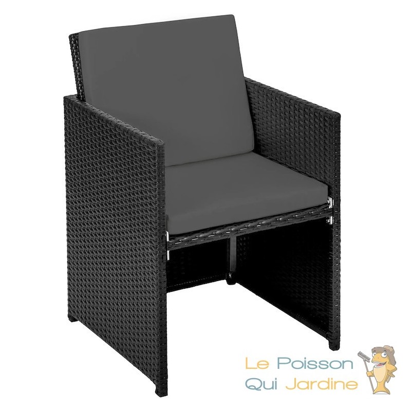 L'un des avantages de ce salon de jardin est son côté pratique. En effet, il offre une économie de place lors du remisage grâce à sa fonctionnalité encastrable. Les dossiers des fauteuils se replient pour se glisser sous la table, tout comme les tabourets. Ainsi, une fois rangé, le salon de jardin ne prend qu'un minimum d'espace, ce qui est particulièrement appréciable lorsque vous avez une grande famille ou un espace de rangement limité.