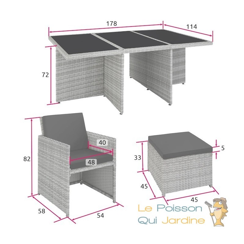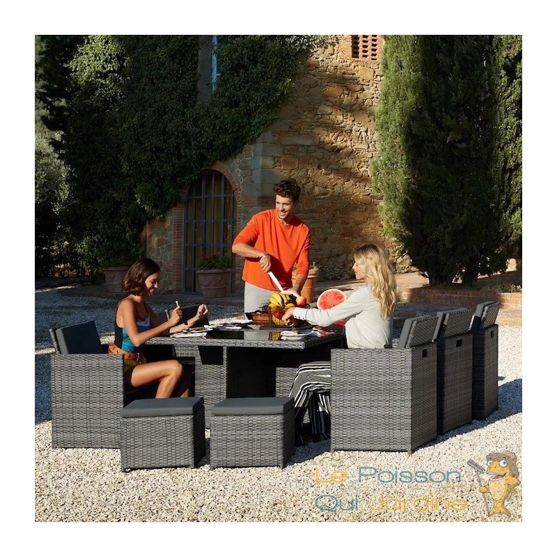 Créez un espace convivial pour les grandes familles avec notre salon de jardin encastrable. Son design contemporain et son assise confortable en font le choix idéal pour partager un repas ou se détendre en extérieur. Grâce à sa polyvalence, il convient aussi bien pour l'extérieur, tel que le jardin, la terrasse ou le balcon, que pour l'intérieur, comme une véranda, un jardin d'hiver ou un salon.