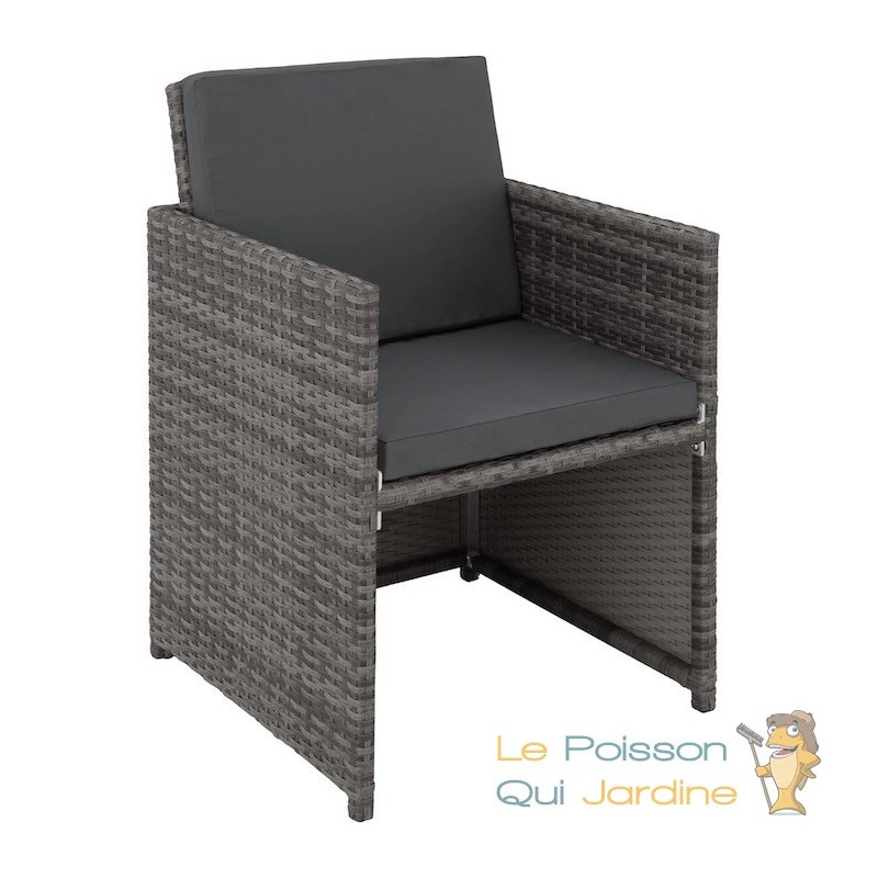 L'un des avantages de ce salon de jardin est son côté pratique. En effet, il offre une économie de place lors du remisage grâce à sa fonctionnalité encastrable. Les dossiers des fauteuils se replient pour se glisser sous la table, tout comme les tabourets. Ainsi, une fois rangé, le salon de jardin ne prend qu'un minimum d'espace, ce qui est particulièrement appréciable lorsque vous avez une grande famille ou un espace de rangement limité.