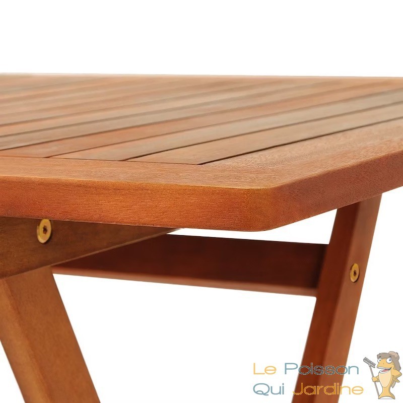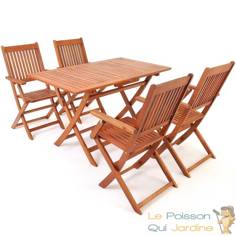 Polyvalent, il s'adapte à différents environnements extérieurs tels que la terrasse, le balcon ou le jardin, ajoutant une touche d'élégance et de fonctionnalité à chaque espace. De plus, les avantages de ce produit sont nombreux : un ensemble complet pour quatre personnes, fabriqué en bois d'acacia traité préalablement pour une durabilité accrue, des accoudoirs confortables et une table ainsi que des chaises pliables pour un rangement pratique et peu encombrant.