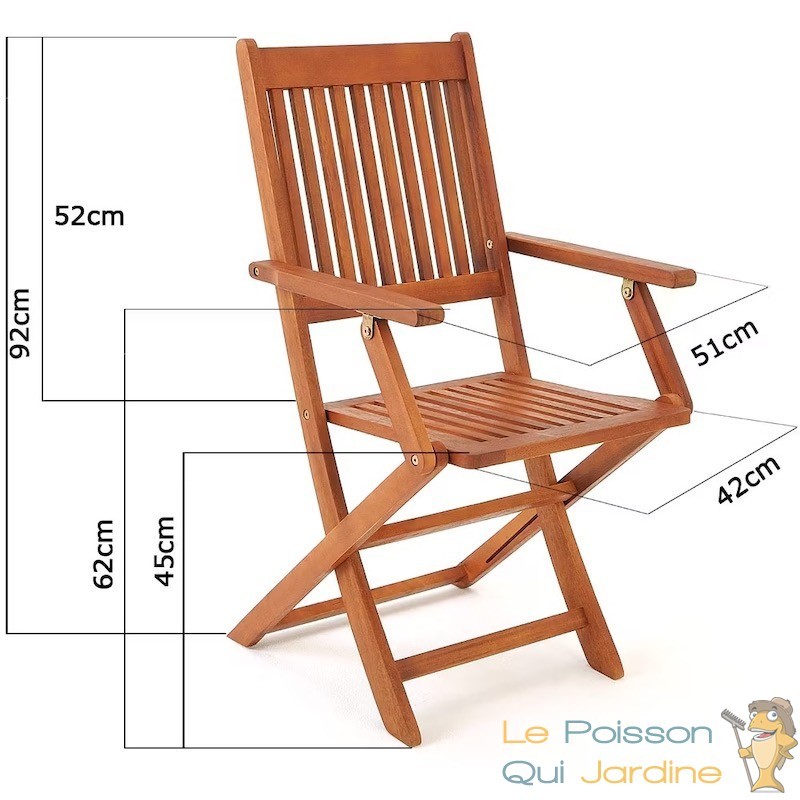 - Chaises avec accoudoirs (lxH) : 51x 92 cm