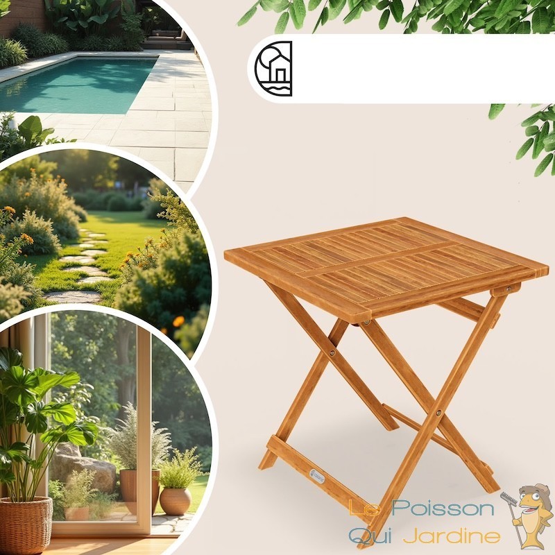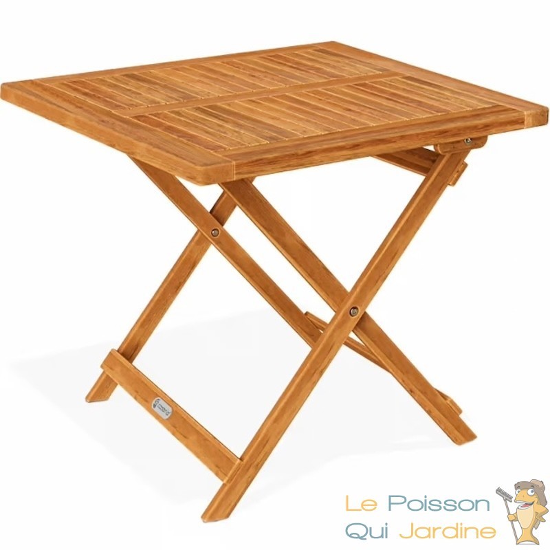 Sa structure en acacia massif et ses charnières de haute qualité lui confèrent une excellente stabilité. Avec ses dimensions de 70x70 cm, elle supporte parfaitement des pots de fleurs volumineux, de la décoration ou un nécessaire de repas complet.