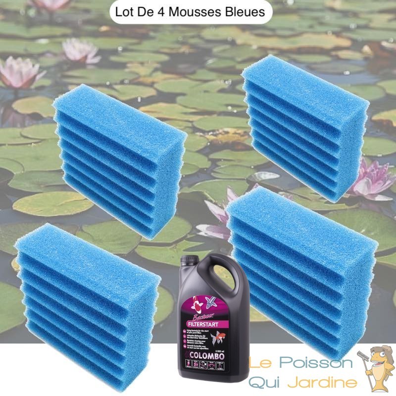 Nous vous proposons 4 mousses bleues, de filtration de remplacement à placer dans le filtre de bassin de jardin que nous vendons. + bactéries 1000ml