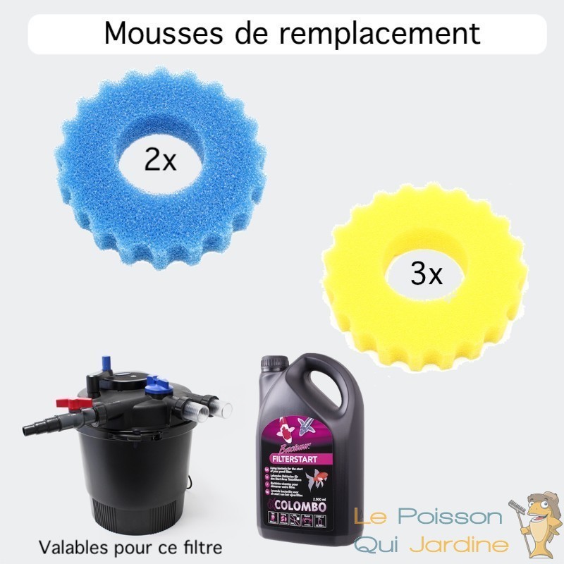 Ce lot de mousses de remplacement est un lot de mousse d'origine. Il s'agit donc de pièces qui s'installeront parfaitement dans votre filtre du bassin car elles sont aux même dimensions que les mousses que vous avez reçues lors de l'achat de votre filtre sous pression de bassin de jardin.