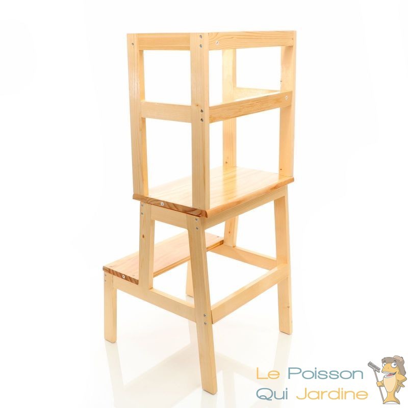 Fabriquée en bois de pin massif, cette chaise est à la fois durable et sûre pour les enfants. Vous pouvez commencer à l'utiliser dès que votre enfant commence à marcher, avec une capacité de charge maximale de 85 kg et une marche pour accéder à la plate-forme surélevée.