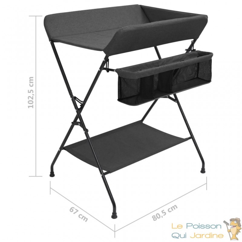 De plus, le plateau à langer est équipé de compartiments latéraux pratiques pour le rangement de tous les articles essentiels pour votre bébé, offrant un accès facile à tout ce dont vous avez besoin pendant le changement de couches. Une fois le change terminé, vous pouvez facilement plier la table à langer pour économiser de l'espace, ce qui en fait un choix idéal aussi bien pour une utilisation à la maison que pour les déplacements.