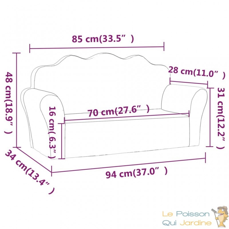 Matériau confortable : Ce canapé est revêtu de peluche douce, procurant un toucher délicieusement doux et réconfortant. Non seulement agréable au toucher, mais également durable et facile à nettoyer, cette peluche assure un confort durable pour votre enfant.