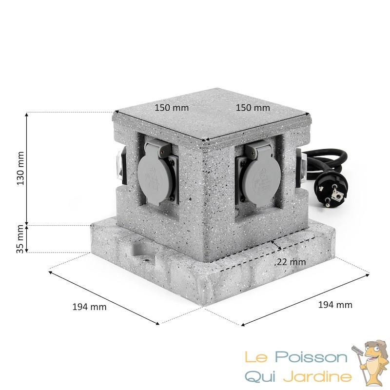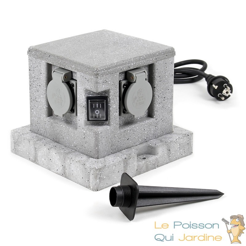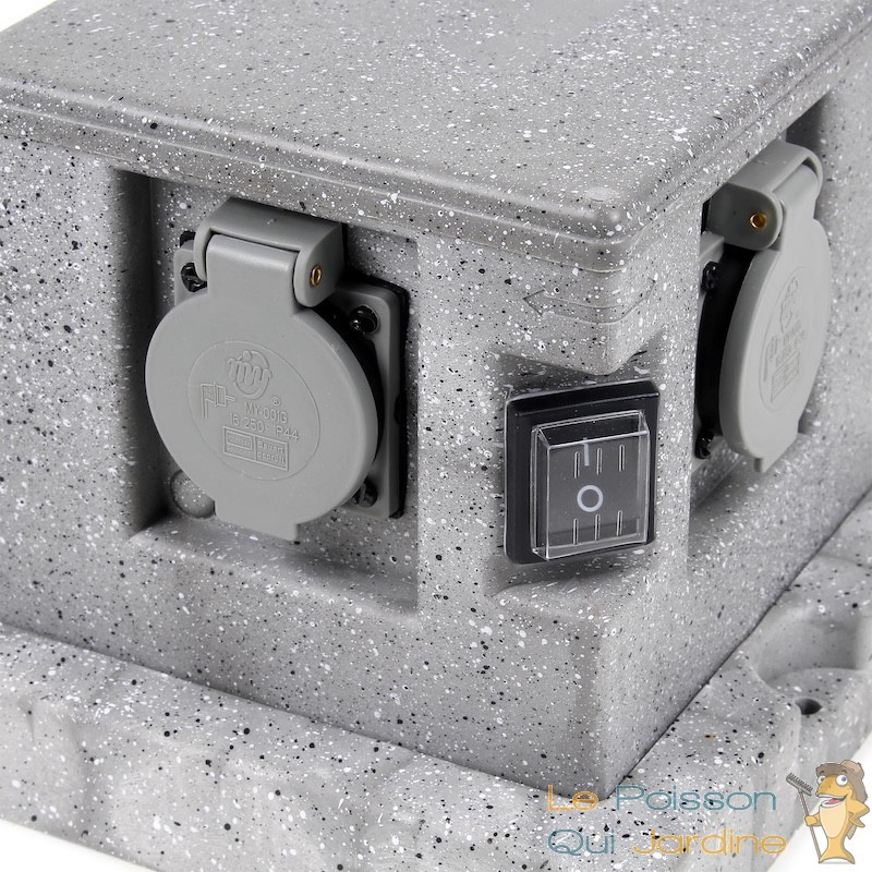 ✔ Multiprise Étanche : Dissimulée dans un coffret imitation pierre.