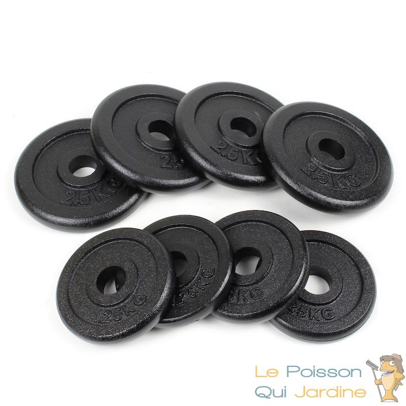 - 8 disques ( 4 X 1,25kg - 4 X 2,5 kg )