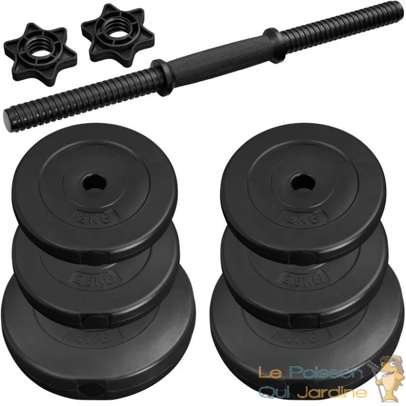 - 6 disques ( 2 X 2 kg - 2 X 5kg - 2 X 2,5 kg )