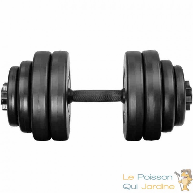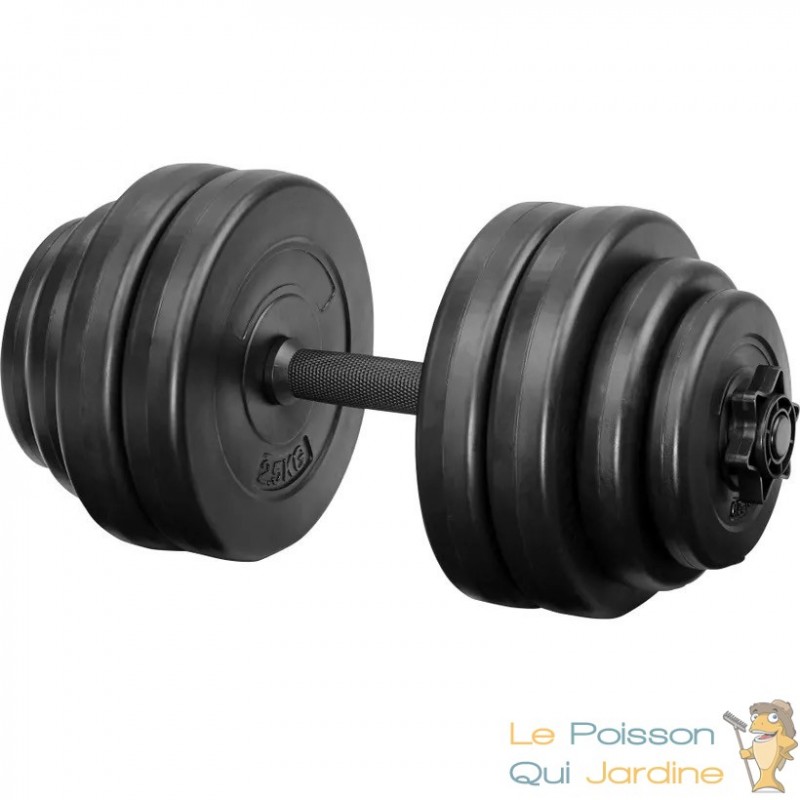 - 8 disques ( 2 X 0,75 kg - 2 X 1,25 kg - 4 X 2,5 kg )