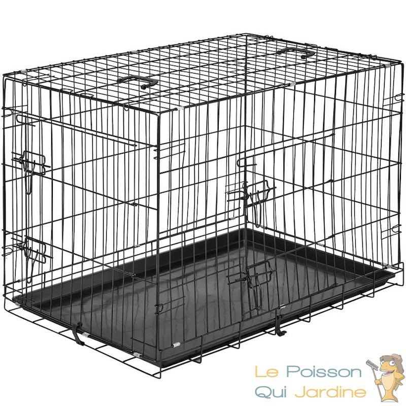 Bien entendu, cette cage convient également parfaitement à d'autres petits animaux, leur offrant un cocon sûr et confortable. Il s'agit d'une cage de transport polyvalente pour chien en acier pliable de couleur noire. Elle est prête à l'emploi en quelques gestes et peut être repliée, ce qui la rend peu encombrante lorsqu'elle n'est pas utilisée. Les deux grandes portes à l'avant et sur le côté permettent à votre animal de compagnie d'entrer et de sortir facilement de la cage. De plus, la cage peut également être utilisée comme parc à chiots.