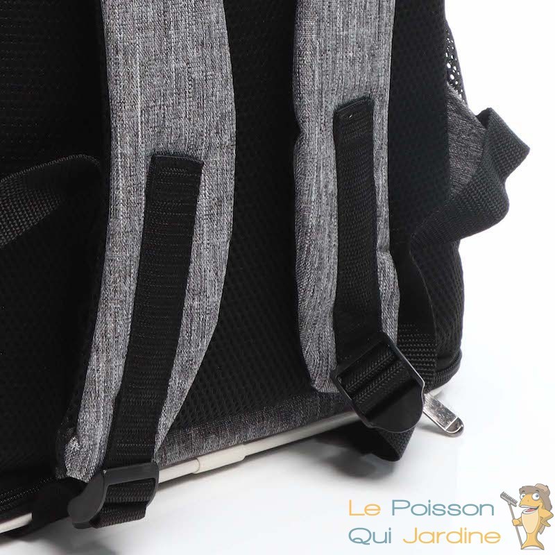 Votre confort pendant le transport est également primordial pour nous : les sangles d'épaule sont rembourrées et réglables. Le dossier ergonomique en mousse respirante amortit les chocs et assure une répartition équilibrée du poids. Contrairement à une caisse de transport classique, vous gardez les deux mains libres.