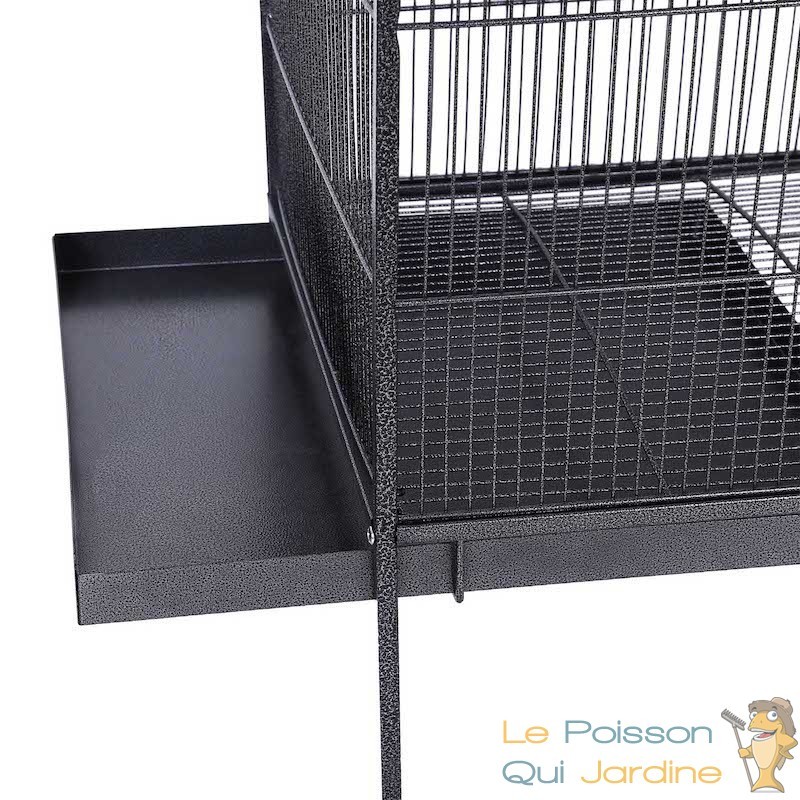 Pour faciliter le déplacement de la cage, elle est équipée de quatre roulettes solides. Chaque roulette est munie d'un frein de blocage pour assurer la stabilité de la cage une fois positionnée. Ainsi, vous pouvez déplacer facilement la cage selon vos besoins ou la placer dans un endroit ensoleillé ou ombragé en fonction des préférences de vos oiseaux.