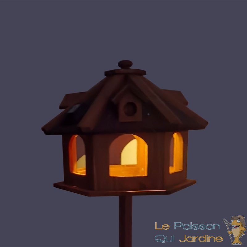 La caractéristique phare de cette mangeoire est sa cellule solaire intégrée, qui se charge pendant la journée et alimente une petite lampe la nuit venue. Ainsi, vous pourrez observer les oiseaux même dans l'obscurité, ce qui ravira tous les amateurs de ces créatures à plumes.