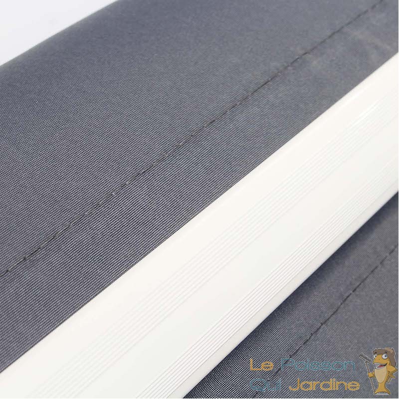 Le store est fabriqué avec un tissu polyester résistant de 280 g/m², spécialement conçu pour résister aux conditions extérieures et offrir une protection solaire efficace. Grâce à sa conception robuste, ce tissu assure une durabilité optimale, même face aux éléments extérieurs les plus rigoureux.