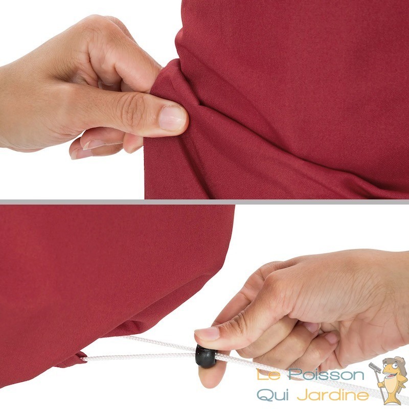Pour une protection optimale lorsqu'il n'est pas utilisé, une housse de protection est incluse. Cette housse est munie d'une cordelette de serrage pour une fixation sécurisée, garantissant ainsi que votre parasol reste en parfait état lorsqu'il n'est pas utilisé.
