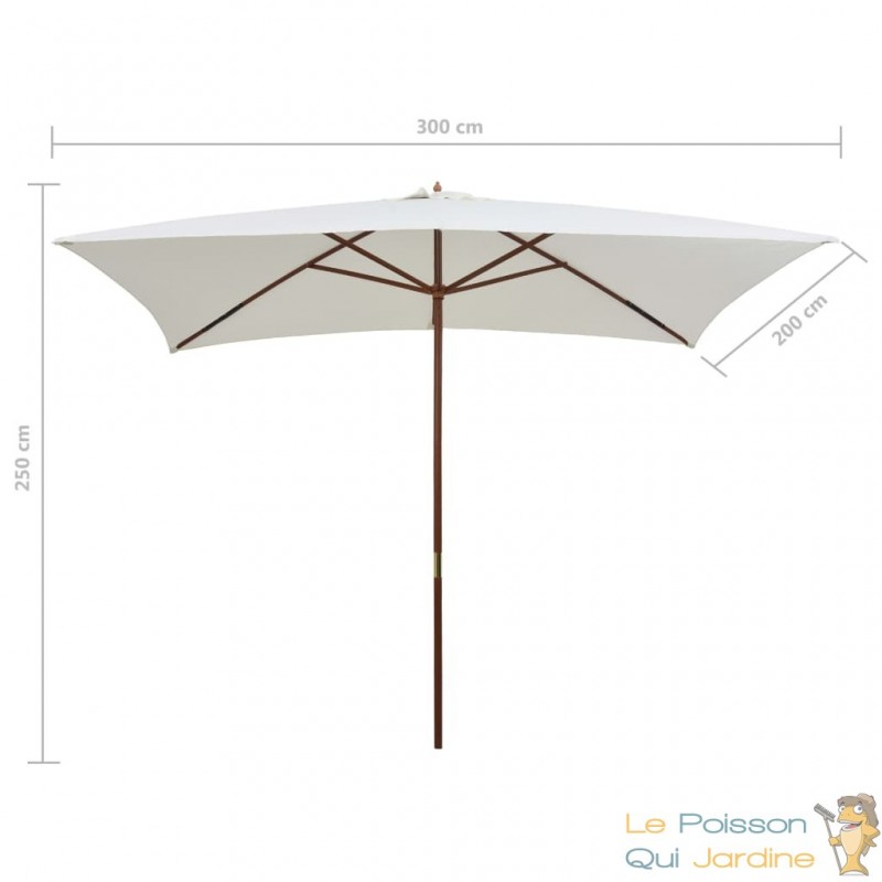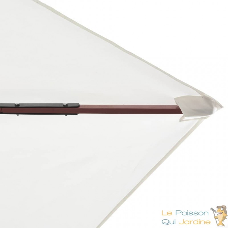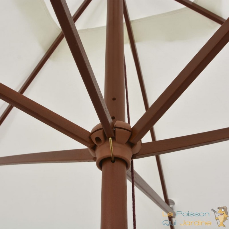 La durabilité est également au rendez-vous grâce à son poteau robuste en bois dur d'une belle couleur de teck et ses 6 nervures solides. Ces caractéristiques ajoutent à sa stabilité et à sa résistance, garantissant que ce parasol restera un élément essentiel de votre espace extérieur pendant de nombreuses années à venir.