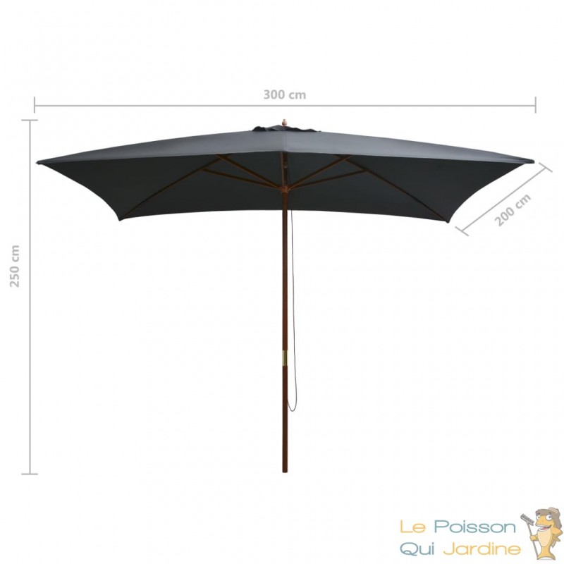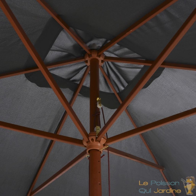 La durabilité est également au rendez-vous grâce à son poteau robuste en bois dur d'une belle couleur de teck et ses 6 nervures solides. Ces caractéristiques ajoutent à sa stabilité et à sa résistance, garantissant que ce parasol restera un élément essentiel de votre espace extérieur pendant de nombreuses années à venir.