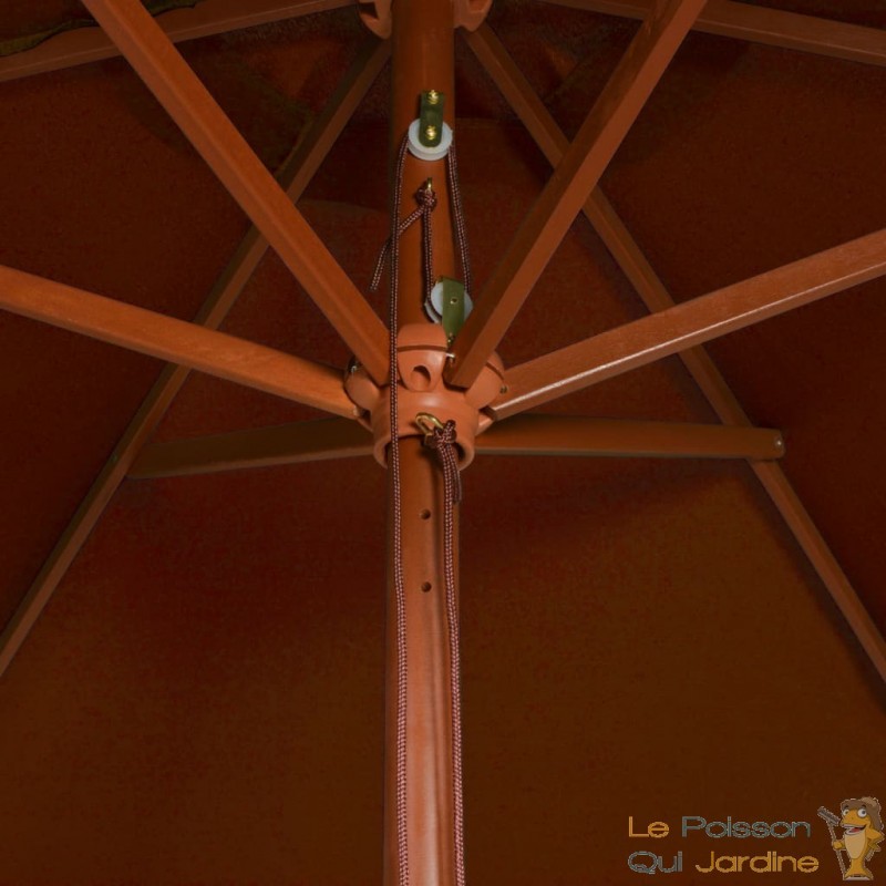 Lorsque vient le temps de l'ouvrir ou de le fermer, vous apprécierez la simplicité et la facilité d'utilisation de ce parasol. Son mécanisme d'ouverture et de fermeture est conçu pour être intuitif, vous permettant ainsi de régler rapidement et facilement l'ombre selon vos besoins.