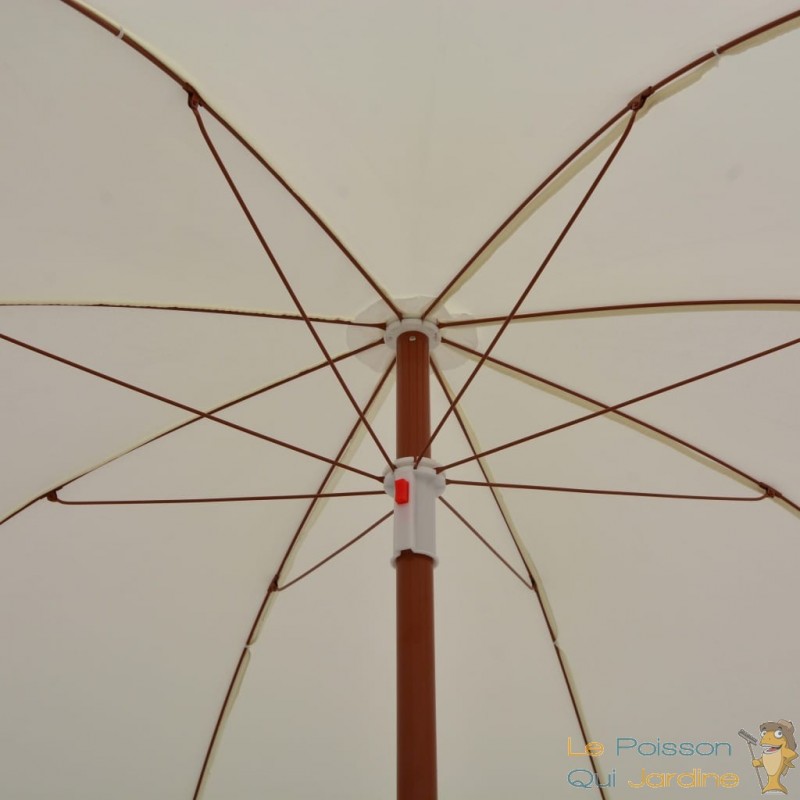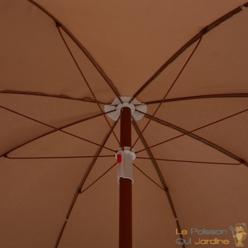 Sa conception méticuleuse ne s'arrête pas là : le mât en acier robuste, habilement revêtu d'une finition imitant le bois, et les 8 nervures solides confèrent à ce parasol une stabilité inégalée, même lors de conditions venteuses. C'est un véritable gage de fiabilité et de longévité, vous assurant une protection constante contre les éléments tout en ajoutant une touche d'élégance à votre espace extérieur.