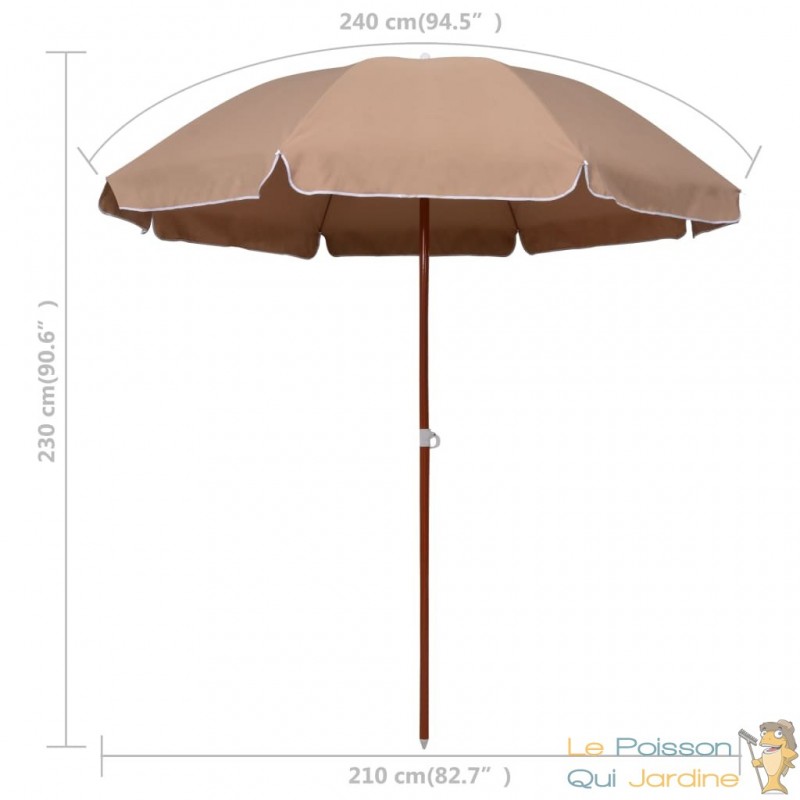 Sa conception méticuleuse ne s'arrête pas là : le mât en acier robuste, habilement revêtu d'une finition imitant le bois, et les 8 nervures solides confèrent à ce parasol une stabilité inégalée, même lors de conditions venteuses. C'est un véritable gage de fiabilité et de longévité, vous assurant une protection constante contre les éléments tout en ajoutant une touche d'élégance à votre espace extérieur.