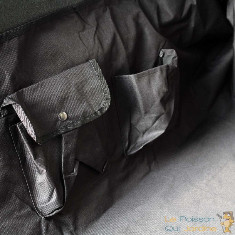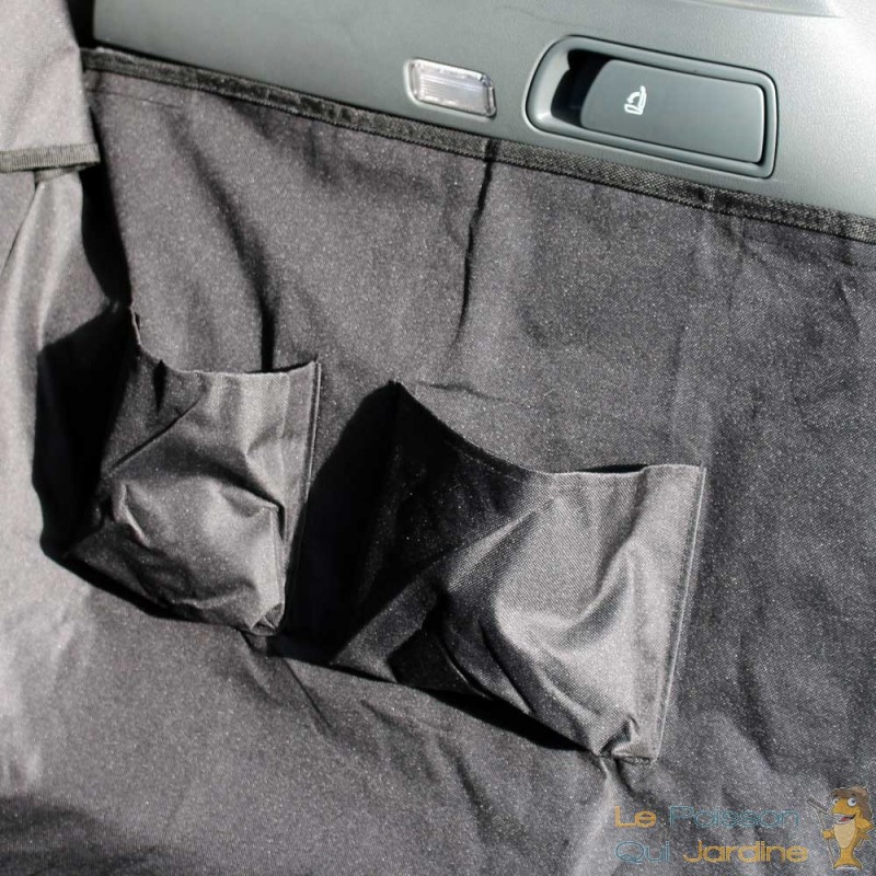 le tour est joué, la housse est installée. Vous avez des poches sur le coté qui vous permettront de mettre les jouets de votre chien ou bien d'autres accessoires.